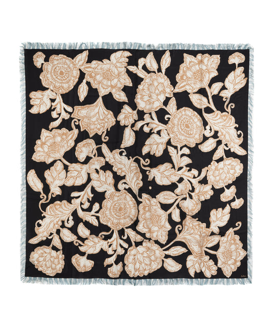 Block Floral Oversized Silk Square Scarf